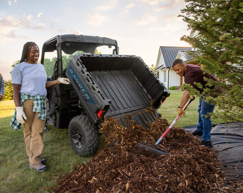 Get more done with SP 570. Efficiently carry and unload supplies with the gas-assist dump box and navigate rough terrain with on-demand AWD.